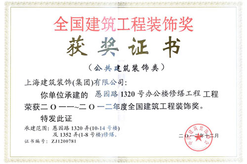 上海市建筑装饰金奖